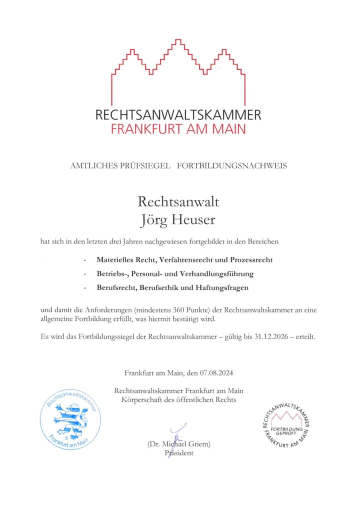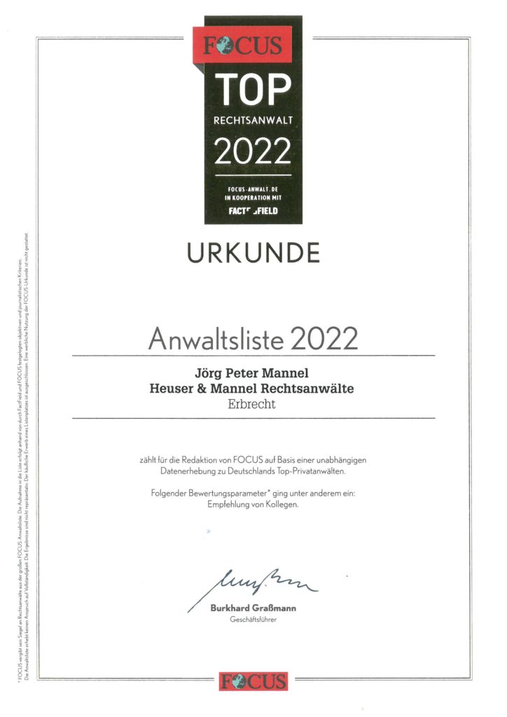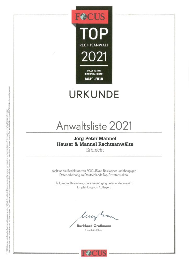 Da sich die Rechtslage bekanntlich immer wieder ändern kann, ist uns besonders wichtig, stets auf dem aktuellen Wissensstand zu sein – auch, damit Sie uns und unseren Fachkenntnissen zu 100 Prozent vertrauen können. Wir besuchen daher jährlich umfangreiche Weiterbildungen, etwa im Bereich Prozessrecht und Verhandlungsführungen. Unsere Mühe zahlt sich aus: So wurde Jörg Peter Mannel 2017 von der Redaktion des FOCUS zu einem von Deutschlands Top-Privatanwälten gezählt. Mit mindestens 30 Fortbildungsstunden im Jahr gehört das Hemateam übrigens zu den Anwälten, die wesentlich mehr machen als andere Kanzleien – für jeden Fachanwalt sind sonst 15 Stunden das Minimum. Lesen Sie hier mehr zu unseren Zertifikaten.